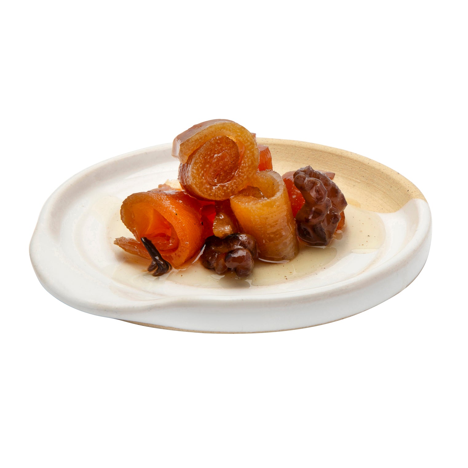 Slow-cooked orange peel and soft walnuts in a fragrant syrup. A luscious topping for desserts or served with strong cheese and crackers.